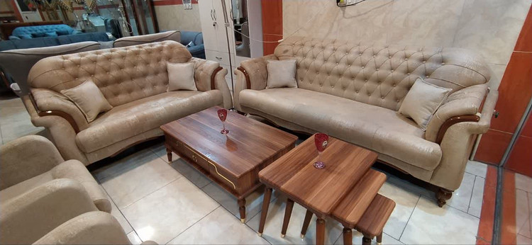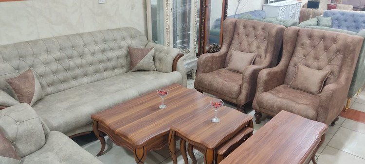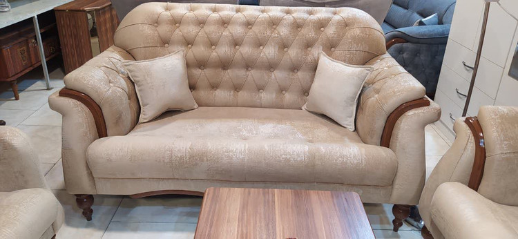 مبل راحتی ست هفت نفره مدل روژان با روکش پارچه و دارای 4 عدد کوسن