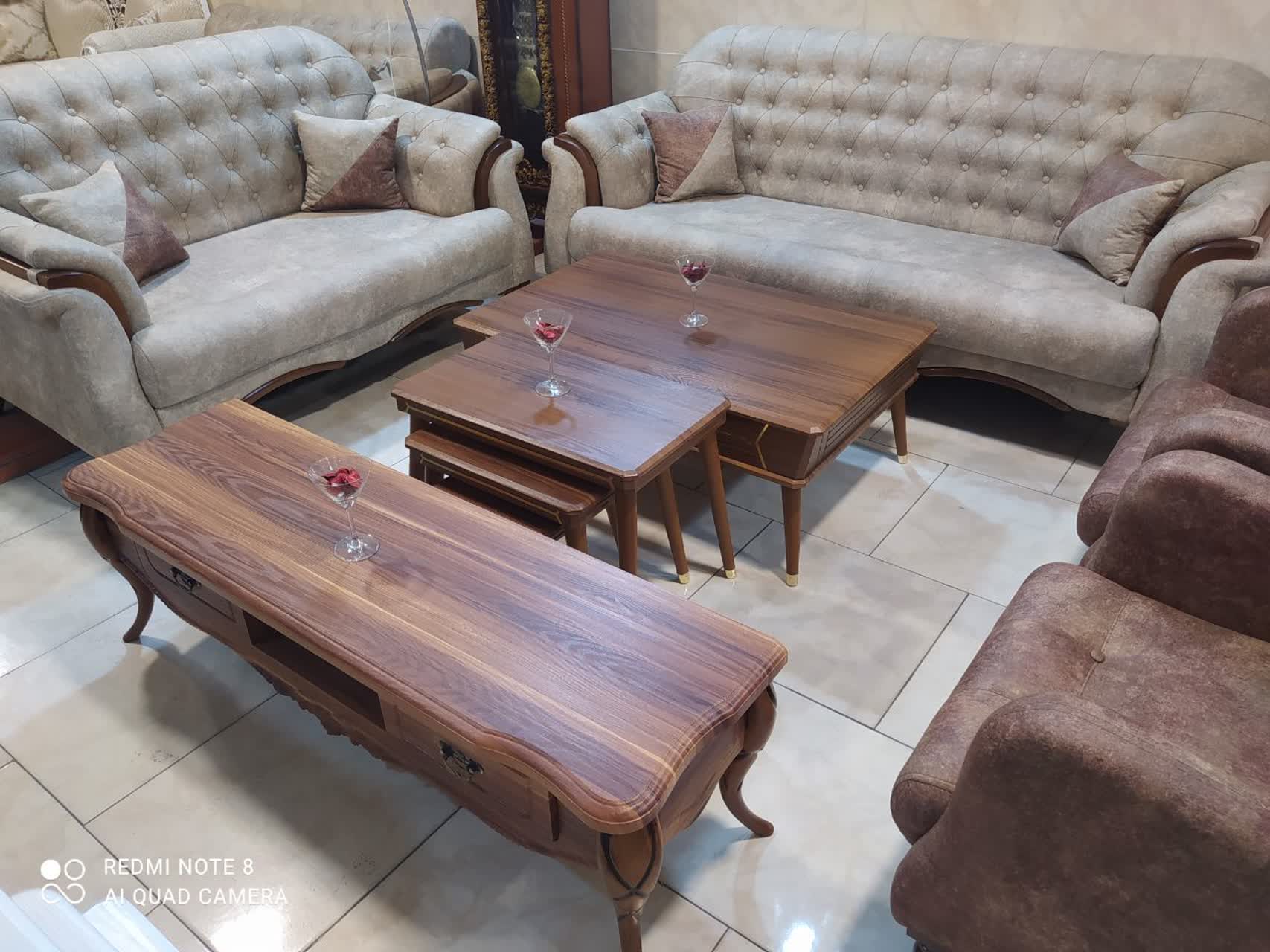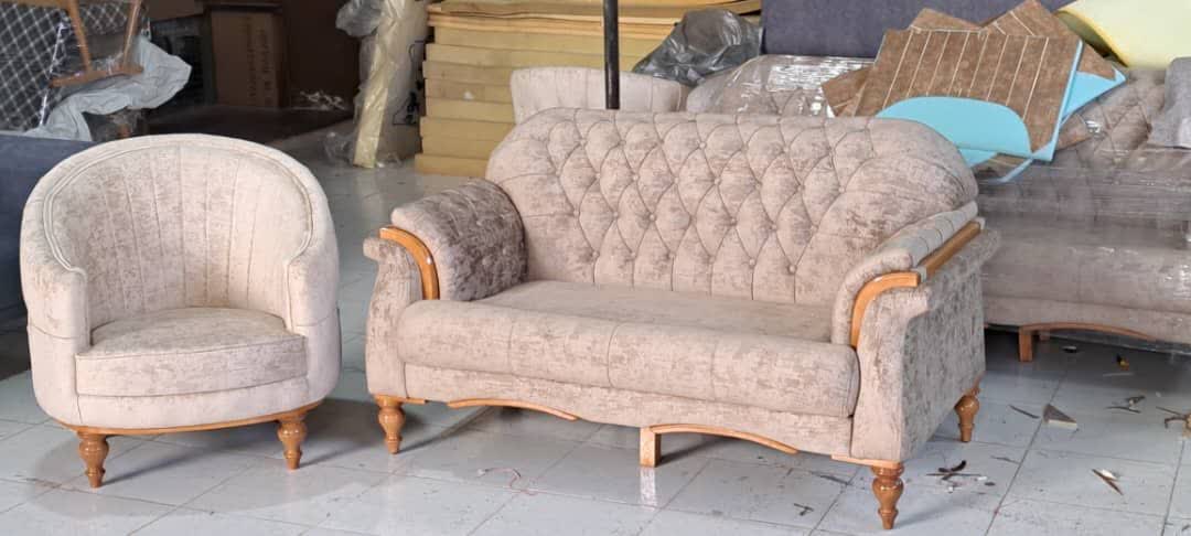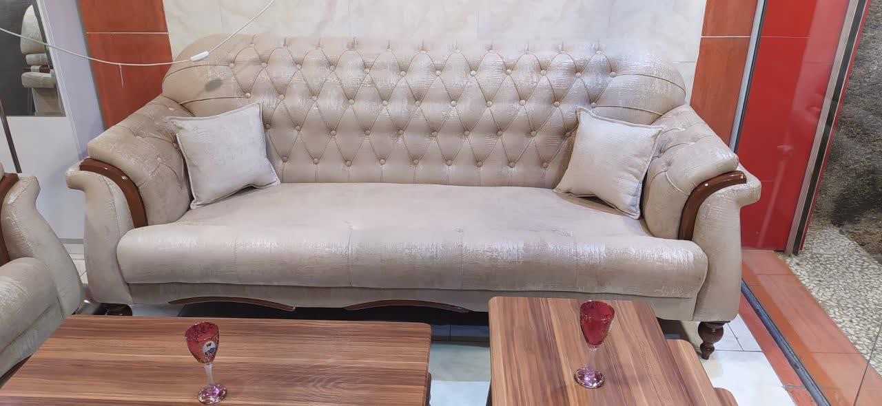 مبل راحتی ست هفت نفره مدل روژان با روکش پارچه و دارای 4 عدد کوسن